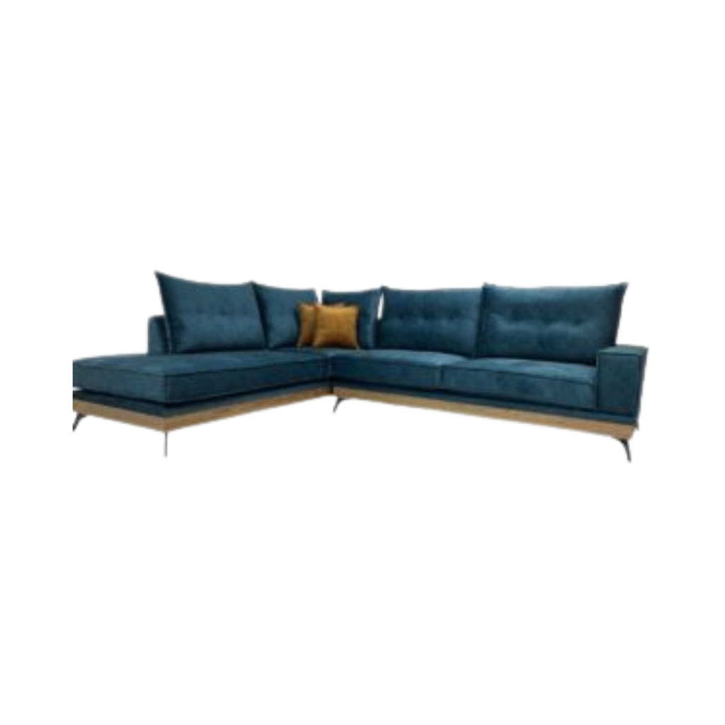 Γωνιακός καναπές Cozy με αδιάβροχο αλέκιαστο ύφασμα. Τα μεταλλικά του πόδια σε συνδυασμό με την ξύλινη βάση του είναι αυτό που το κάνει να δένει αρμονικά. Δυνατότητα κατασκευής 3θέσιο 2θέσιο κατόπιν τηλεφωνικής επικοινωνίας.