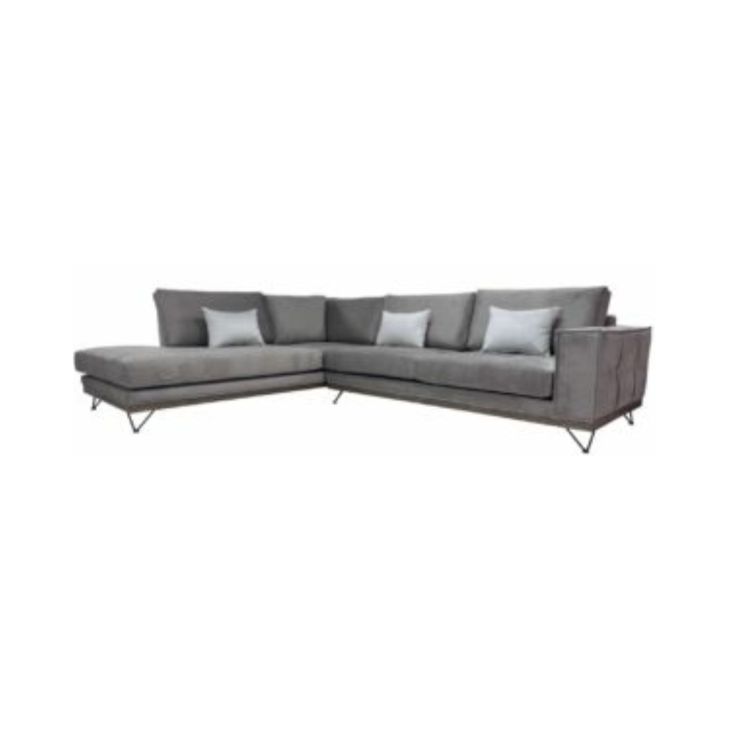 Γωνιακός καναπές Comfort με αδιάβροχο αλέκιαστο ύφασμα. Τα μεταλλικά του πόδια σε συνδυασμό με την ξύλινη βάση του είναι αυτό που το κάνει να δένει αρμονικά. Δυνατότητα κατασκευής 3θέσιο 2θέσιο κατόπιν τηλεφωνικής επικοινωνίας.