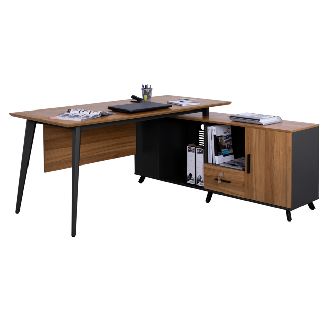 Επαγγελματικό γραφείο SUPREME με αναστρέψιμη γωνία, κατασκευασμένο από μελαμίνη υψηλής ποιότητας, σε γκρι και honey oak απόχρωση.