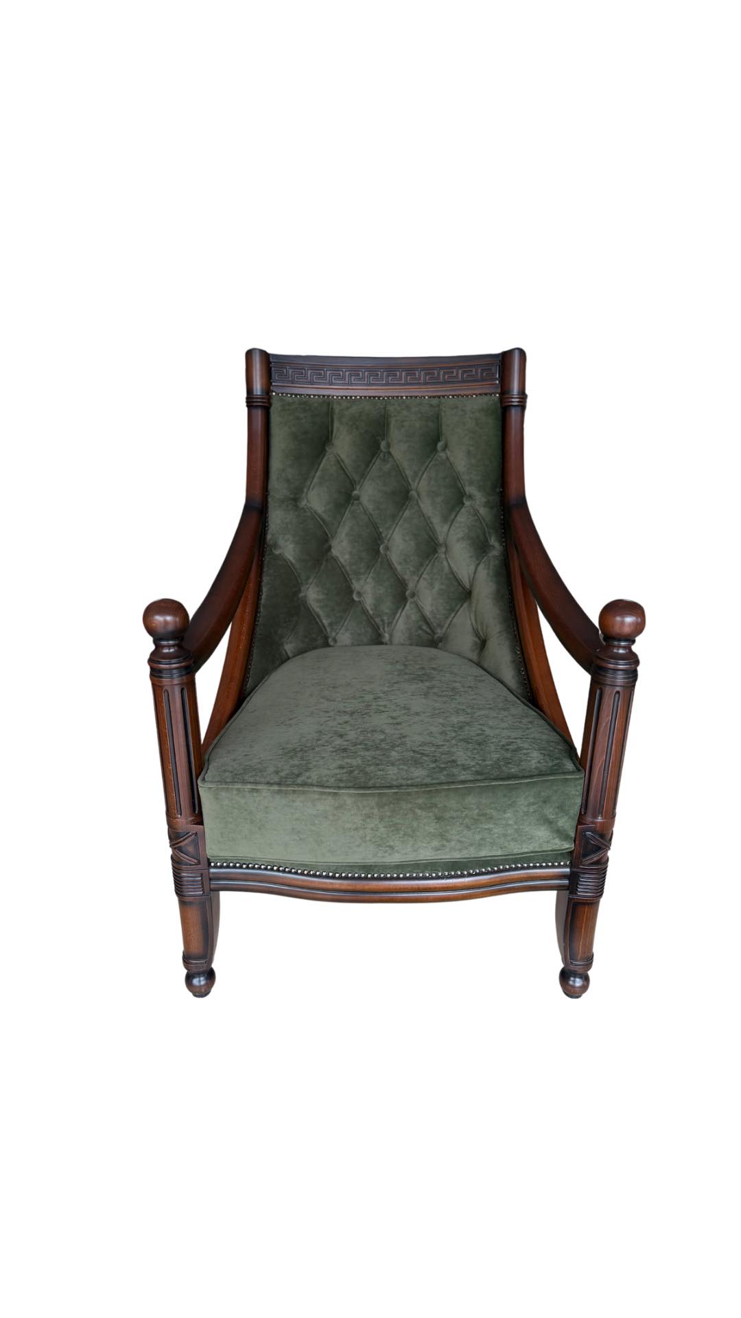 Μια κλασική πολυθρόνα με στυλ που ξεχωρίζει. Το σκαλιστό ξύλο οξιάς σε συνδυασμό με το καπιτονέ στην πλάτη δίνουν μια μοναδική φινέτσα στον χώρο σας.