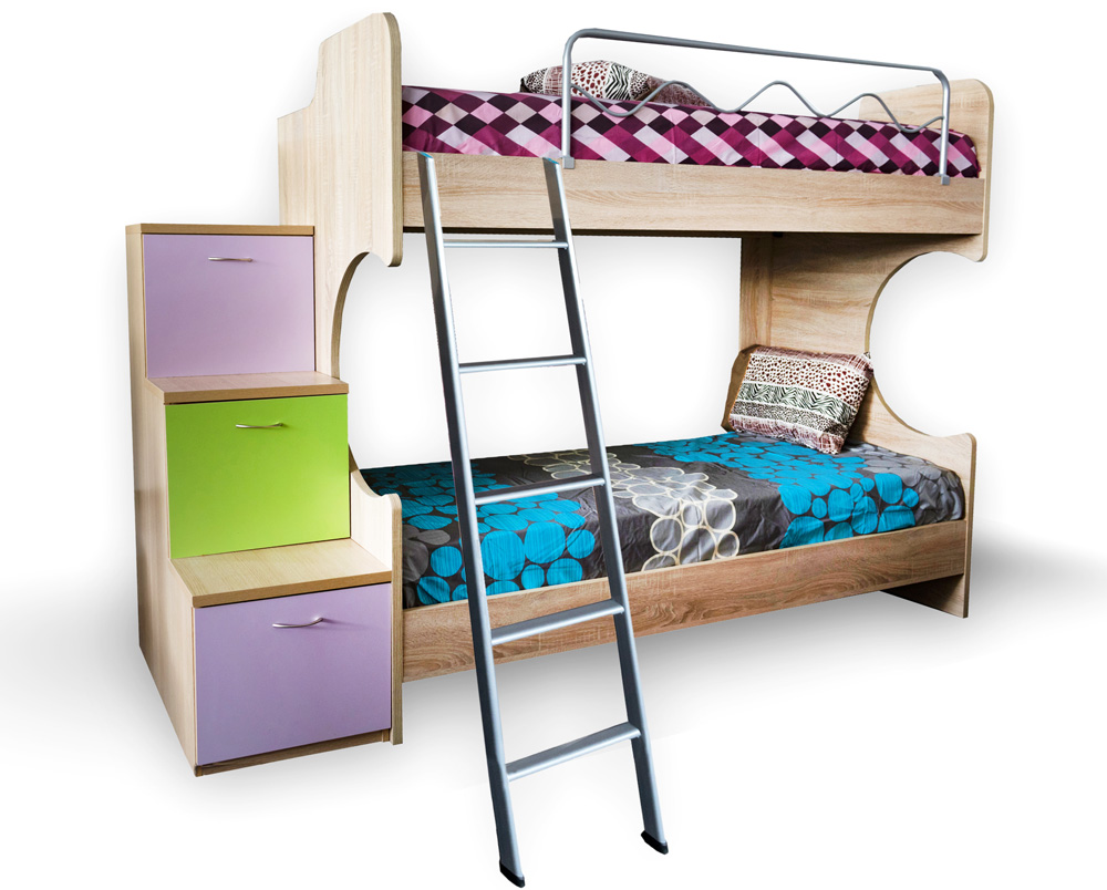 Κουκέτα Ημικύκλιο για στρώμα 190×90, με κάγκελο & μεταλική σκάλα.