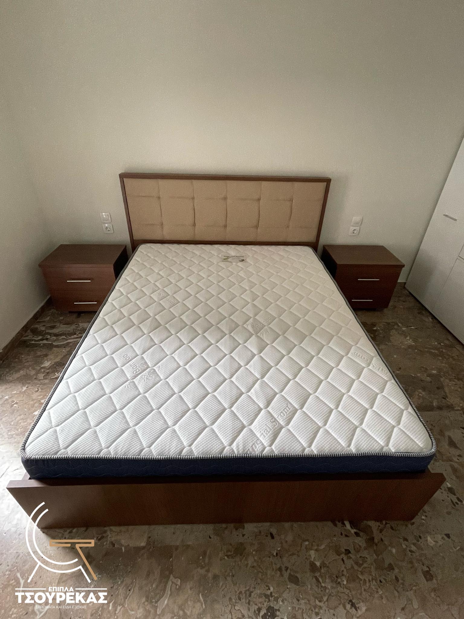 Κρεβάτι σε Μελαμίνη με Τετράγωνα Σχέδια στο Προσκέφαλο