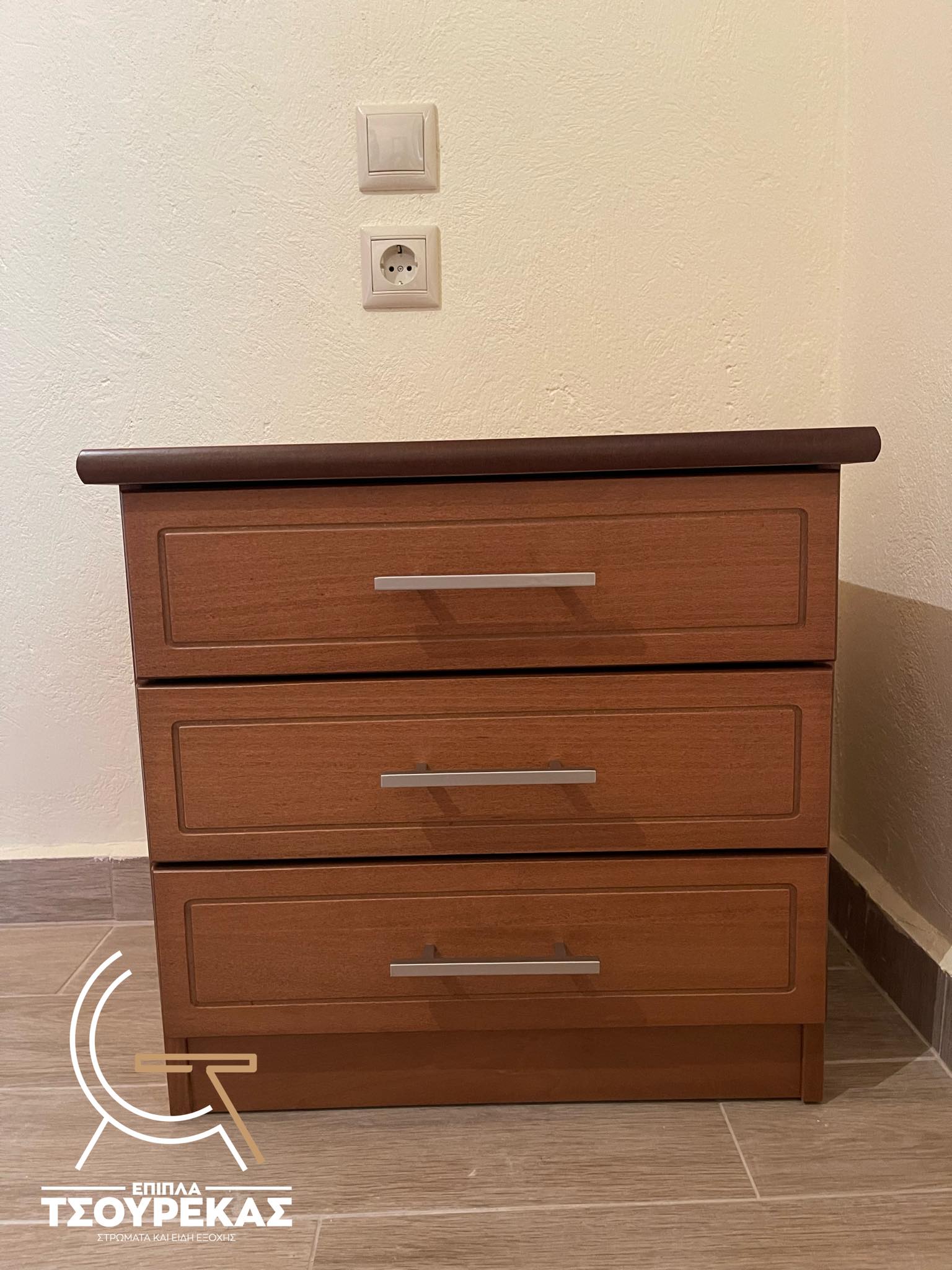 Λουστραρισμένο κομοδίνο με 3 συρτάρια.