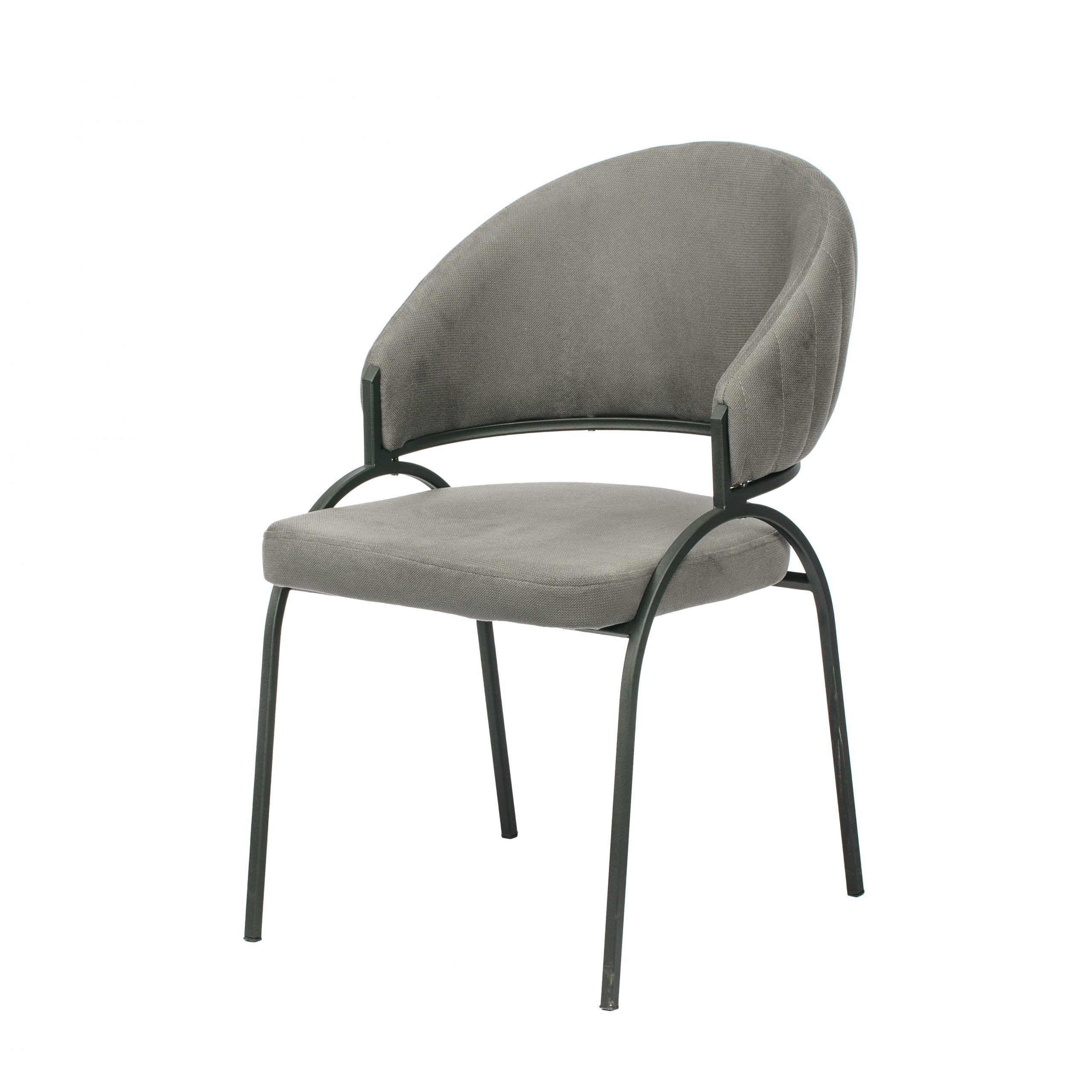 Καρέκλα τραπεζαρίας με μεταλλικά πόδια ντυμένη με ύφασμα.