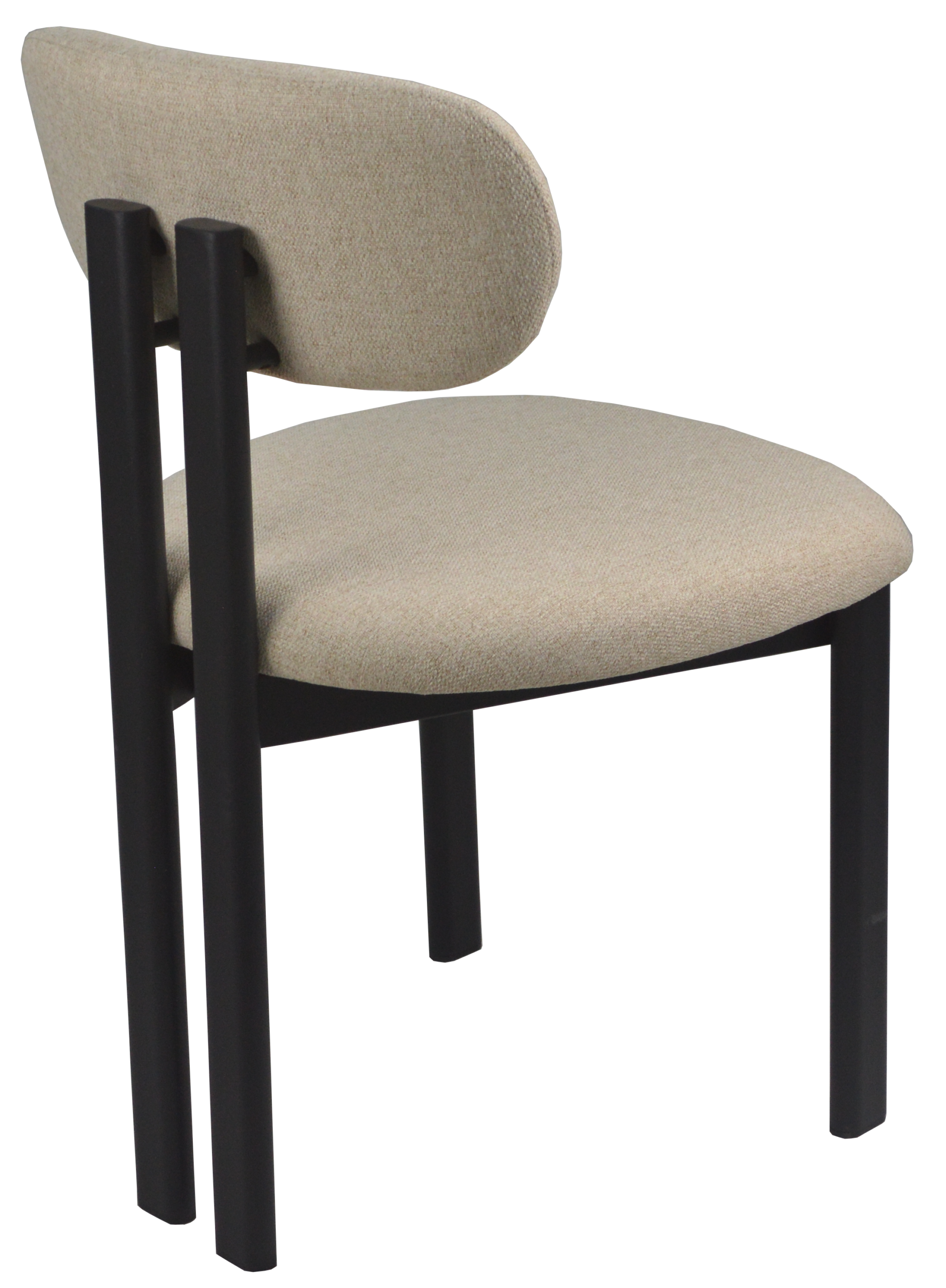 Καρέκλα τραπεζαρίας με μεταλλικά πόδια ντυμένη με ύφασμα.