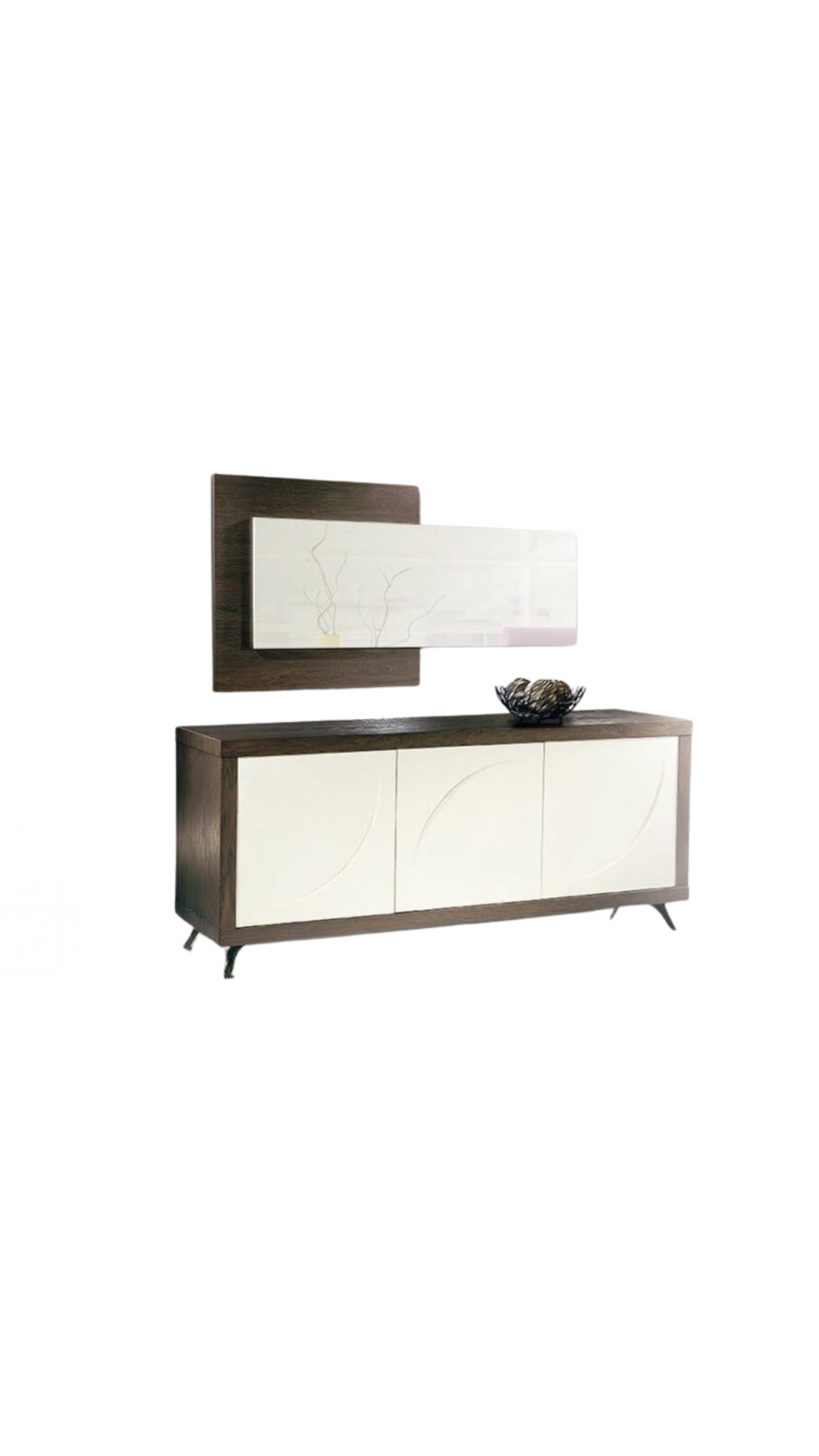 Μοντέρνος μπουφές με πολύ ιδιαίτερες πόρτες. Κατασκευασμένος από ξύλο δρυς με συνδυασμό λάκας.