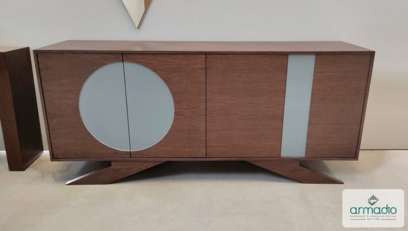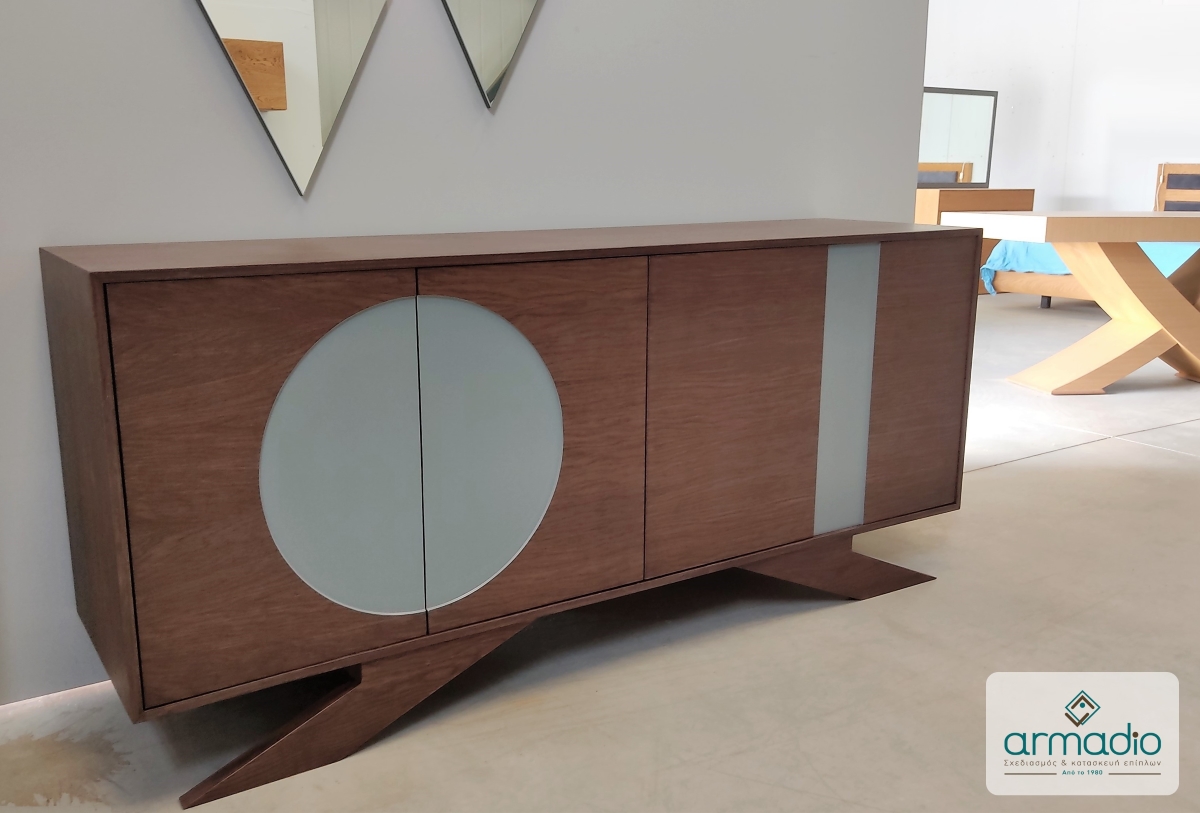 Μοντέρνος μπουφές εξαιρετικής ποιότητας με λακαριστές λεπτομέρειες. Αποτελείται από 2 ντουλάπια με μηχανισμό Push. Είναι κατασκευασμένο από ξύλο δρυς με συνδυασμό λάκας.