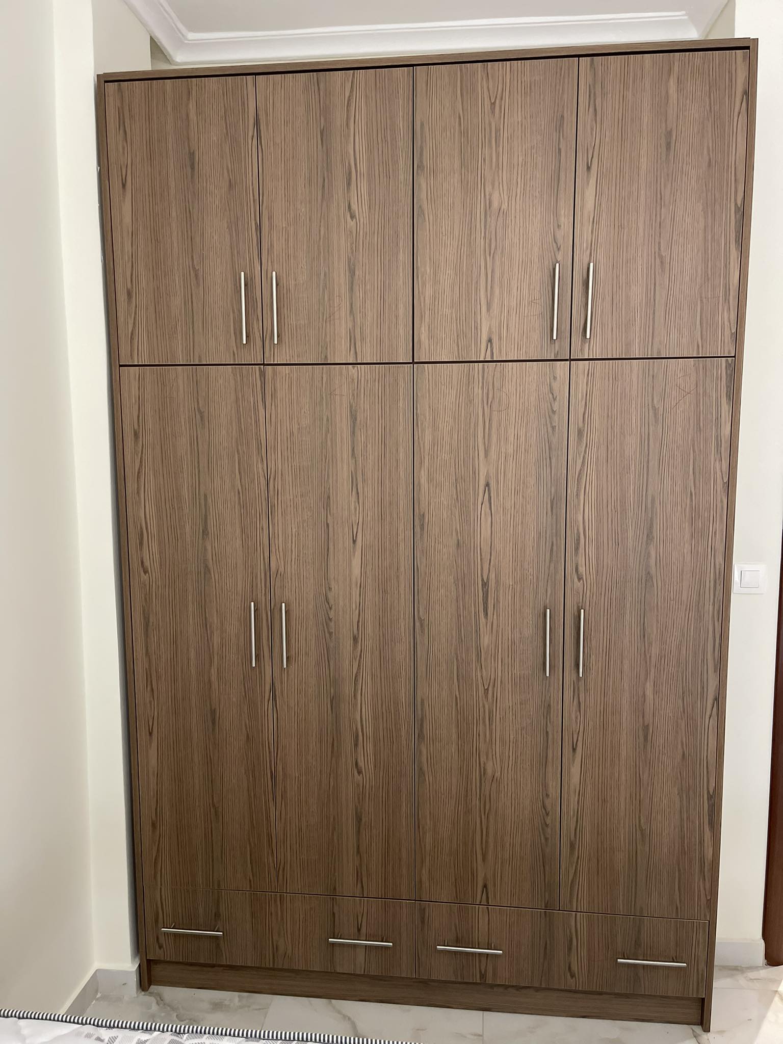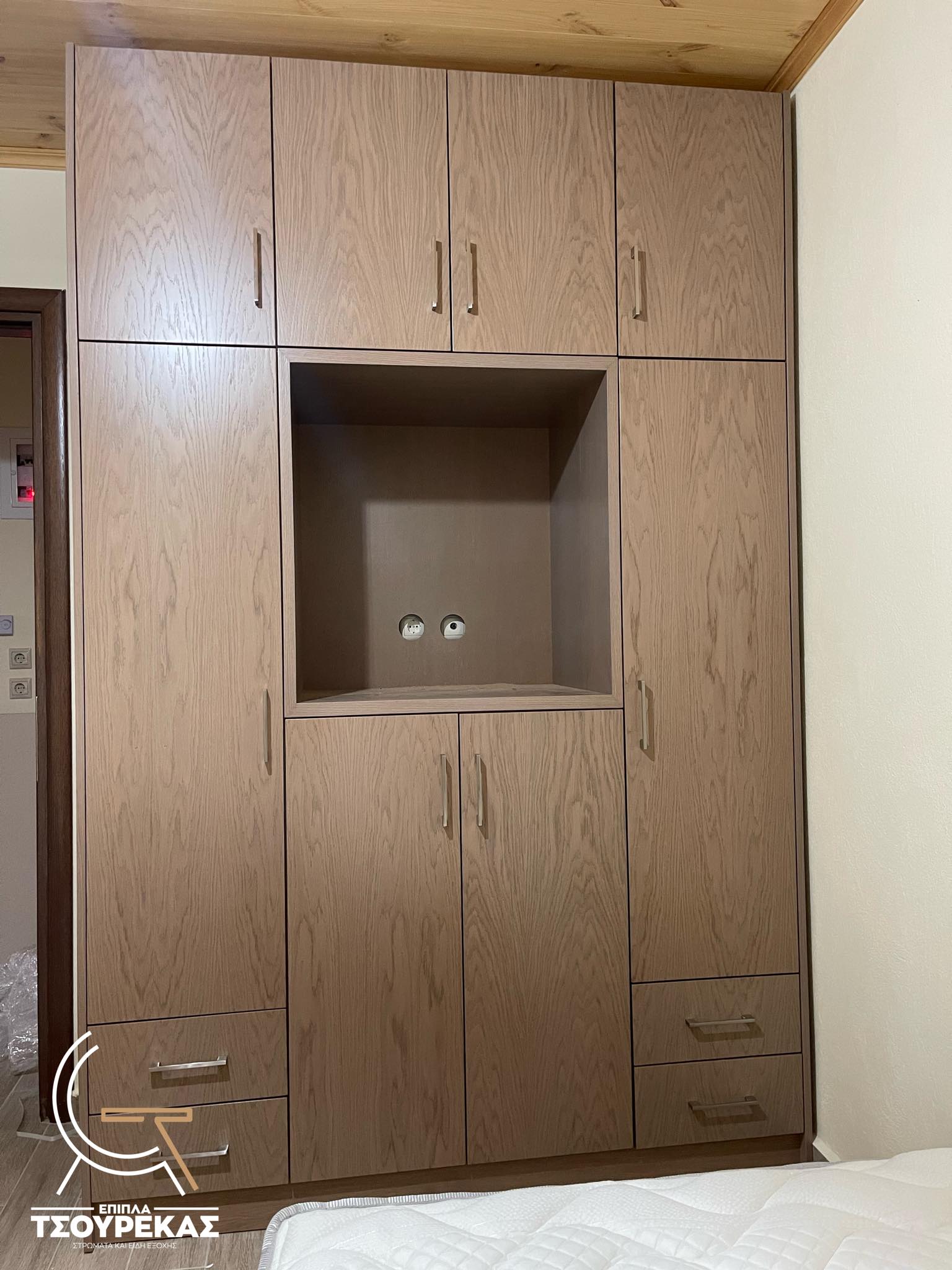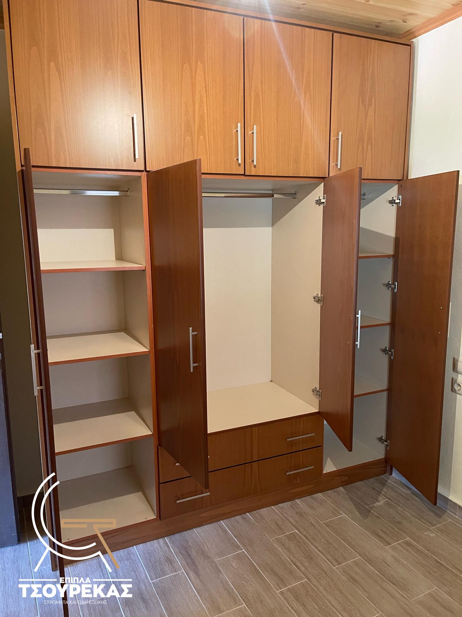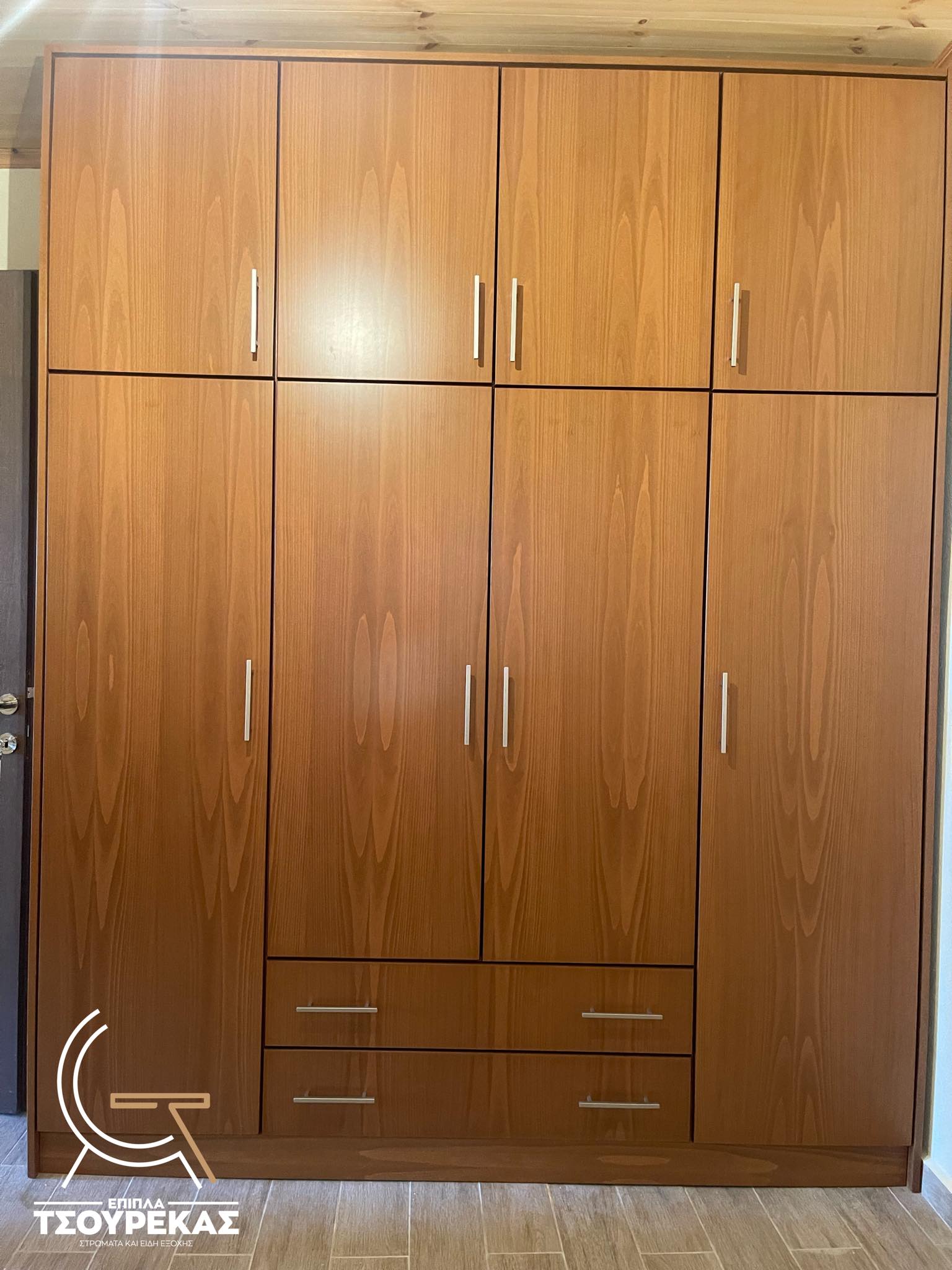 Κατασκευασμένη από πιστοποιημένη με ISO 9001 Ευρωπαϊκή μοριοσανίδα επενδυμένη με υψηλής ποιότητας ανάγλυφη επιφάνεια foil για τέλεια μίμηση του ξύλου.