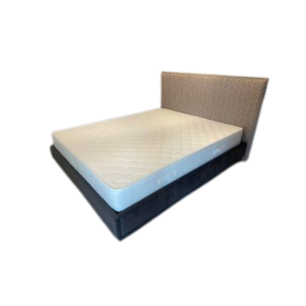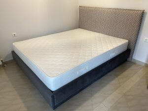 Ντυμένο κρεβάτι με διχρωμία στο προσκέφαλο. Το κρεβάτι είναι κλειστό γύρο γύρο μέχρι κάτω. Δυνατότητα κατασκευής με ποδαράκια και κενό από κάτω όπως και αποθηκευτικού χώρου με μηχανισμό.