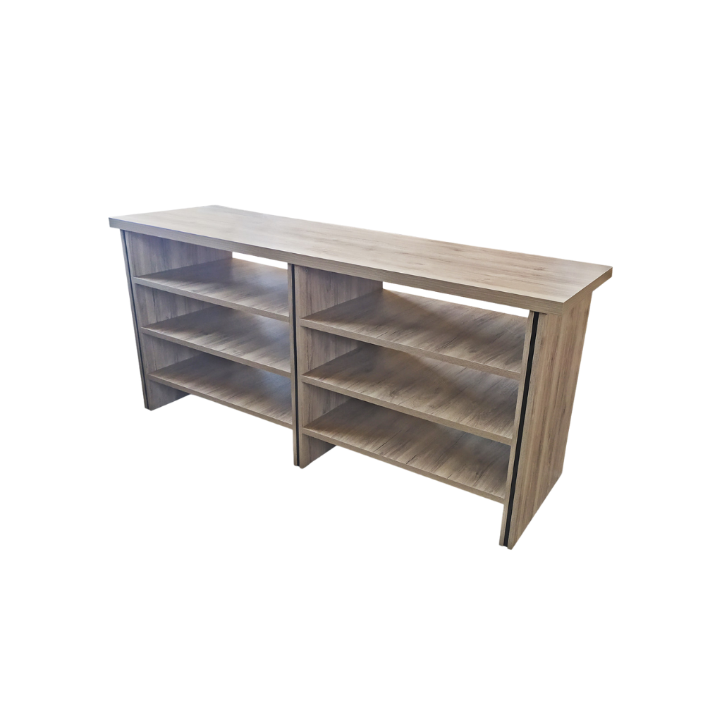 Ο πάγκος καταστημάτων είναι κατασκευασμένος από 25αρα μελαμίνη στο καπάκι. Γύρο γύρο από 18αρα μελαμίνη και στην μέση άλλη μια 18αρα ανθρακί. Χρώματα και διαστάσεις αλλάζουν κατόπιν επικοινωνίας.