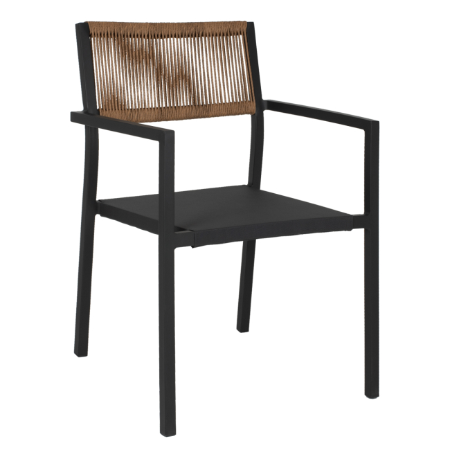 Η πλάτη της πολυθρόνας είναι επενδυμένη με πολυεστερικό RATTAN. Στα περισσότερα έπιπλα κήπου και γενικά σε έπιπλα για εξωτερικούς χώρους χρησιμοποιείται συνθετικό υλικό από PVC, δηλαδή τεχνητές ίνες υψηλής ποιότητας. Αυτό δίνει στην κατασκευή εξαιρετική αντοχή και ανθεκτικότητα σε ακραίες συνθήκες ζέστης ή κρύου.