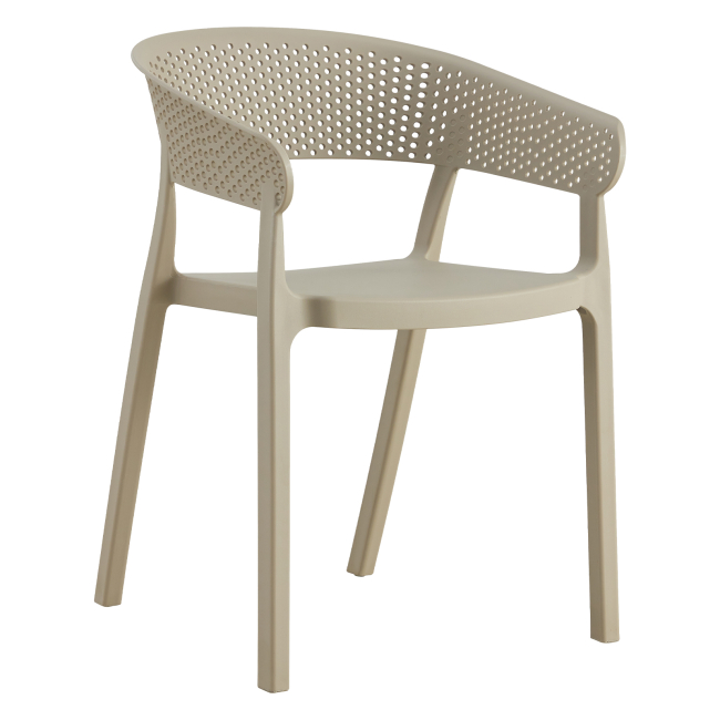 HΜ5941 πολυθρόνα πολυπροπυλενίου. Ιδανική πρόταση για χρήση σε εξωτερικούς χώρους, είτε επαγγελματικούς (χώροι δεξιώσεων, εταιρείες catering, κλπ.) είτε για το σπίτι. Η πολυθρόνα αποτελείται από ένα λείο κάθισμα και μια ημικυκλική, ανεξάρτητη και «τρυπητή» πλάτη και μπράτσα. Είναι πανέμορφη και θα αναβαθμίσει αισθητικά κάθε εξωτερικό χώρο.