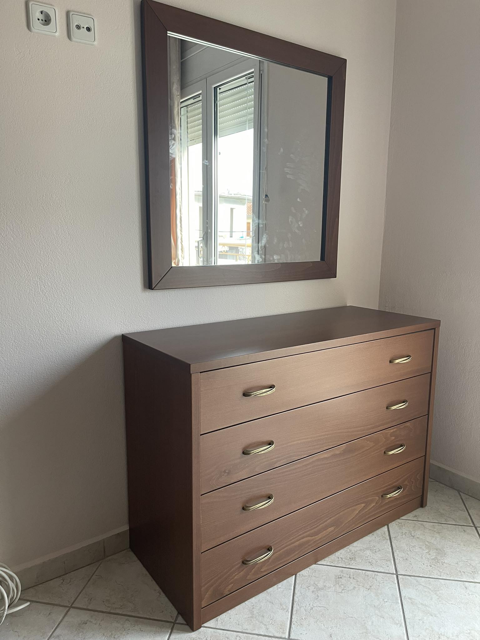 Σετ κρεβατοκάμαρας σε ξύλο οξιάς υψηλής αντοχής. Το σετ αποτελείται από κρεβάτι, τάβλες, 2 κομοδίνα, τουαλέτα και καθρέφτη.
