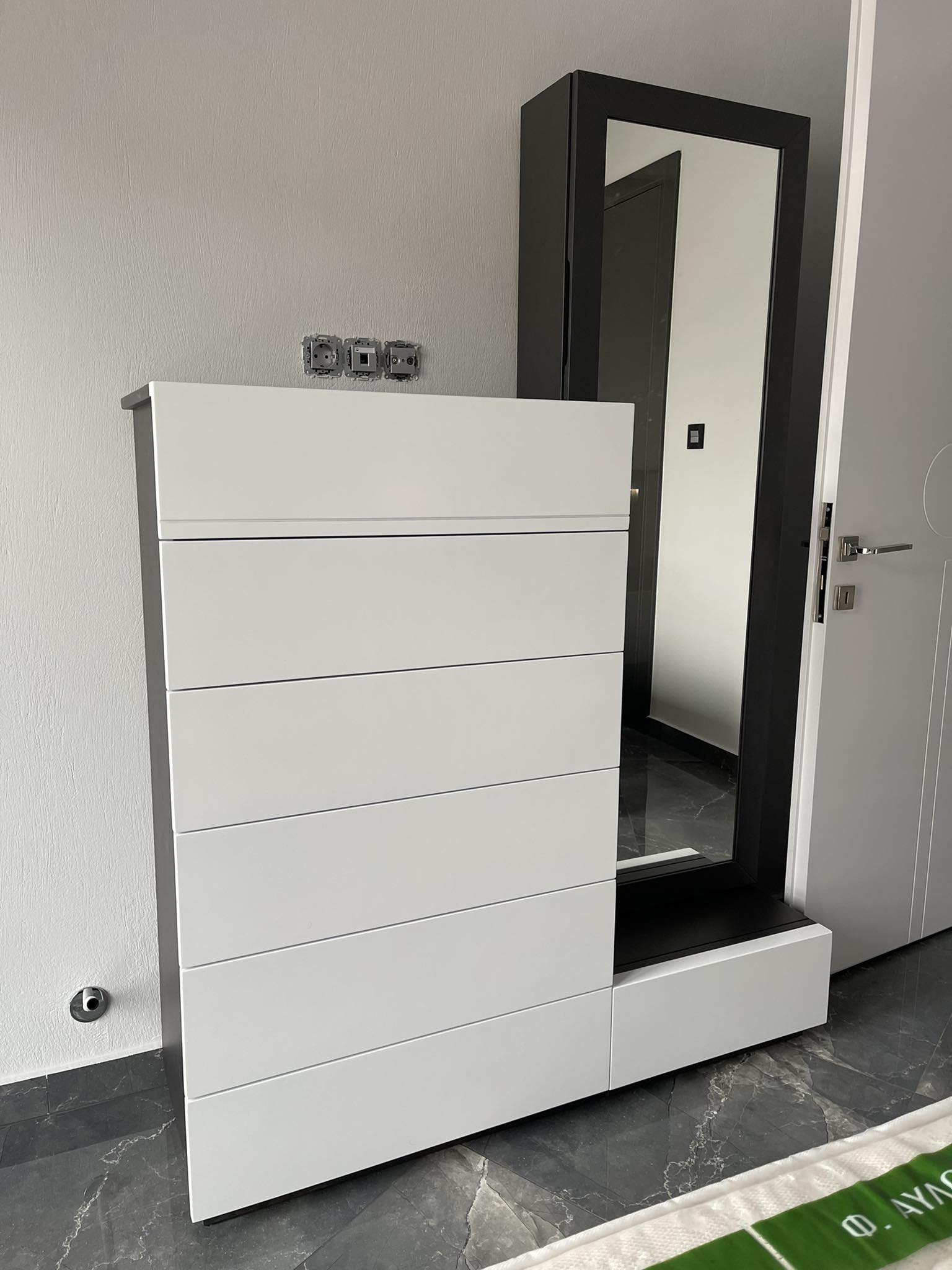 Διαθέτει κομοδίνα και συρταριέρα με καθρέπτη.