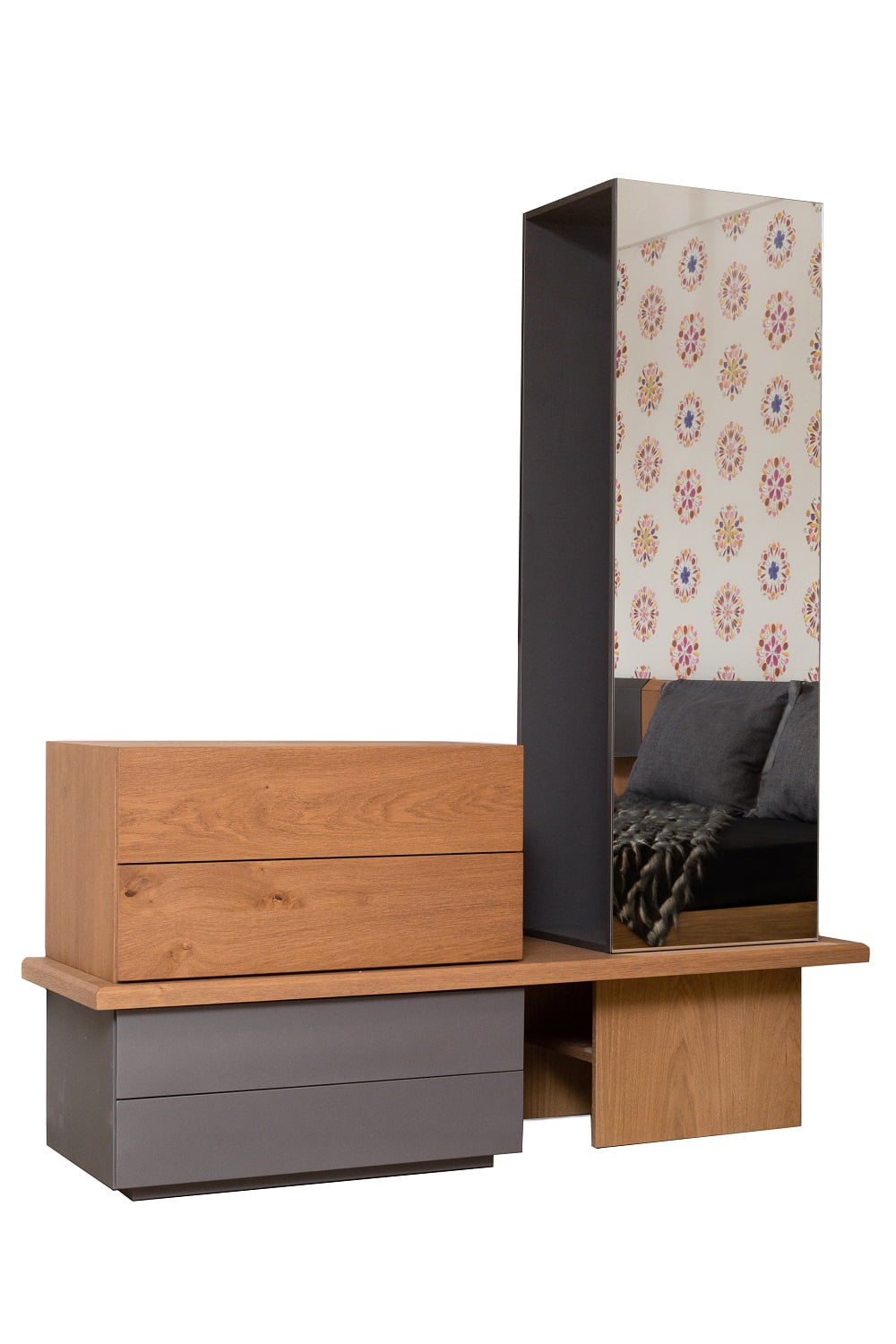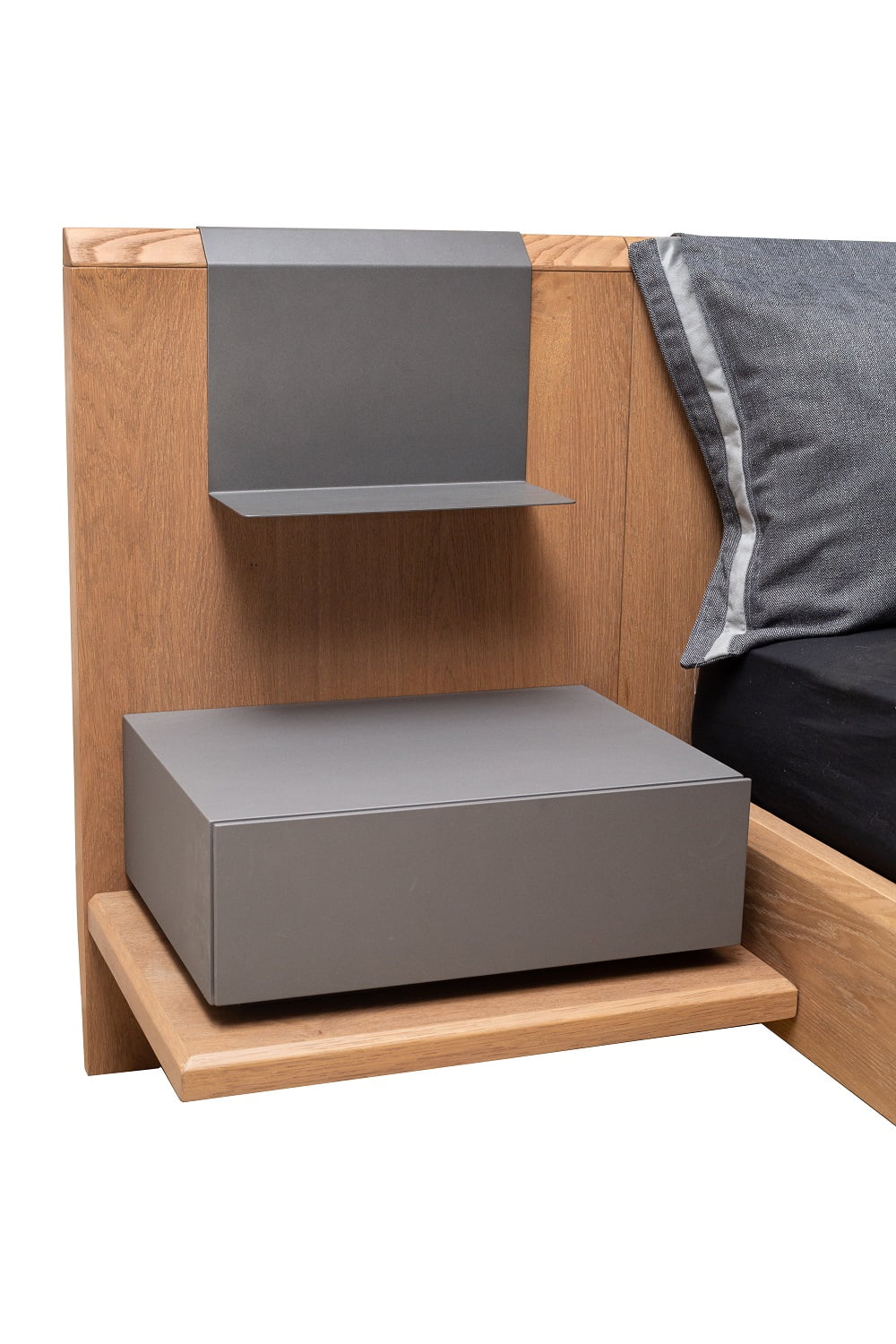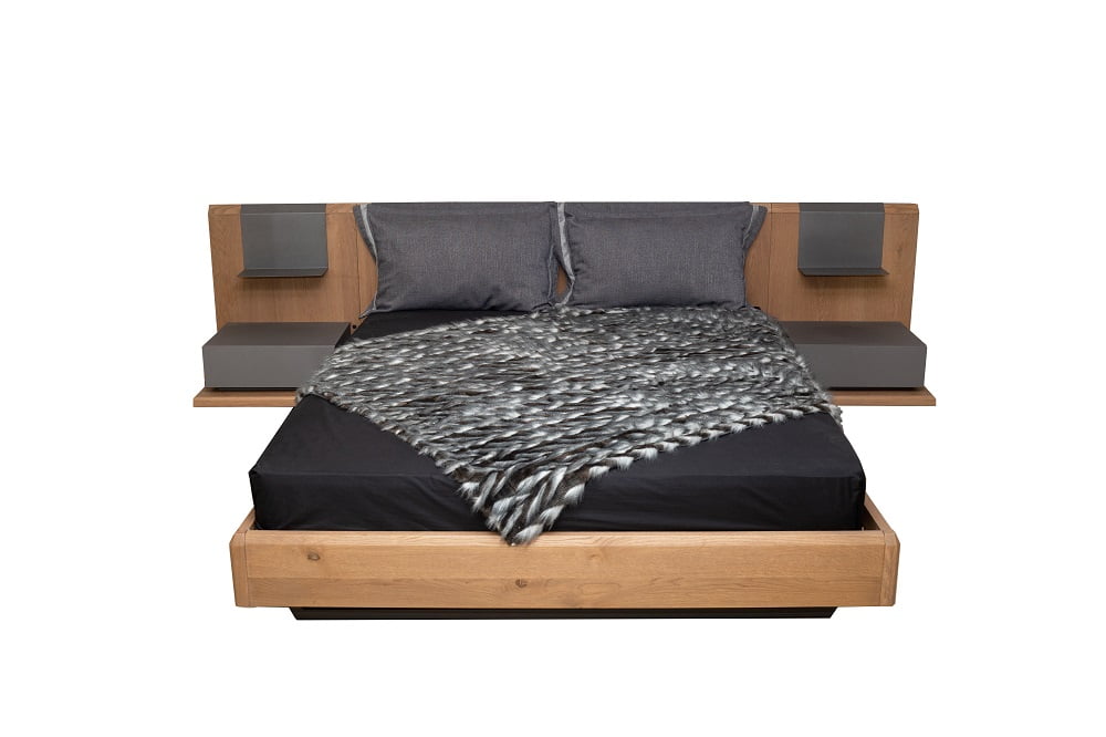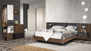Ενιαίο κεφαλάρι που ενώνεται με τα κομοδίνα, κρεμαστά βοηθητικά ραφάκια και διακριτικός φωτισμός led.