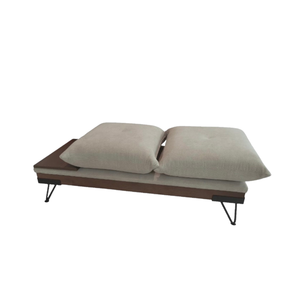 Σκαμπό Π-004 με μεταλλικά πόδια και ξύλινη μπάζα. Με δύο μαξιλαράκια και ξύλινη επιφάνεια για αντικείμενα.