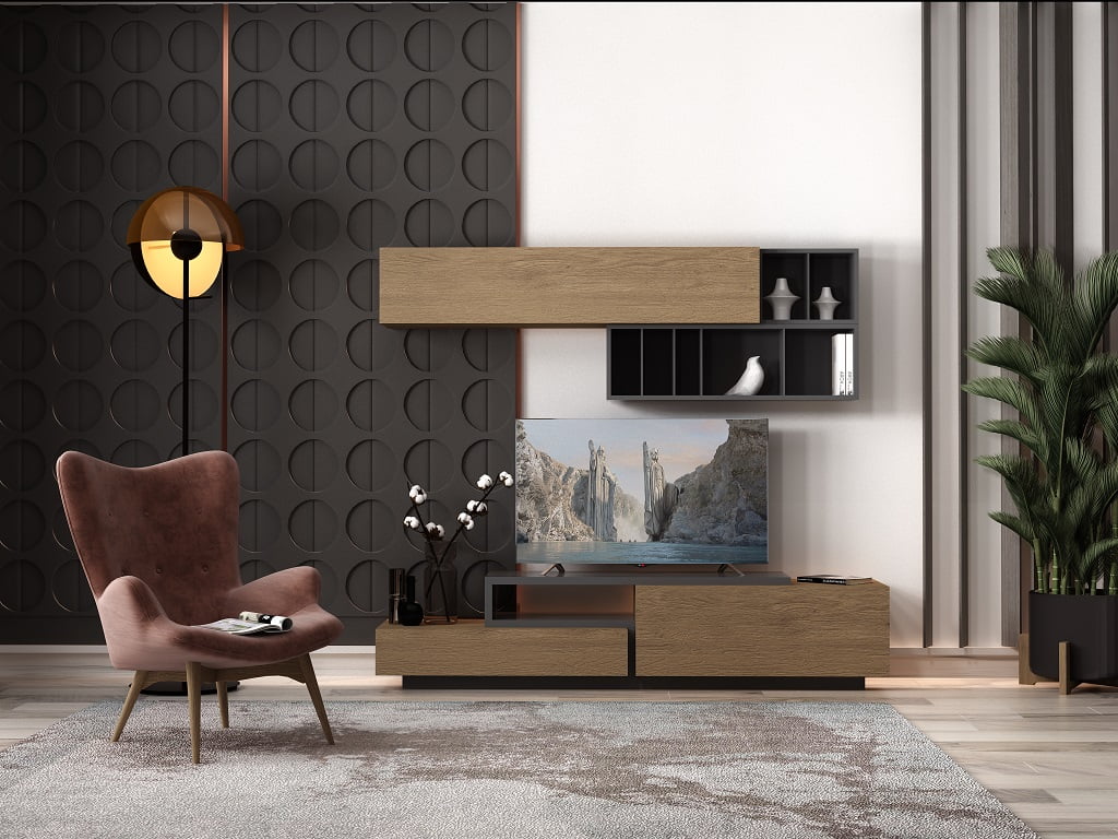 Μόντέρνο σύνθετο σε λιτές γραμμές, ιδανικό για μικρότερους χώρους και ταιριαστό με κάθε στυλ σαλονιού! Η απλότητά του δεν εμποδίζει σε τίποτα, την κομψότητα και το σχεδιασμό του!