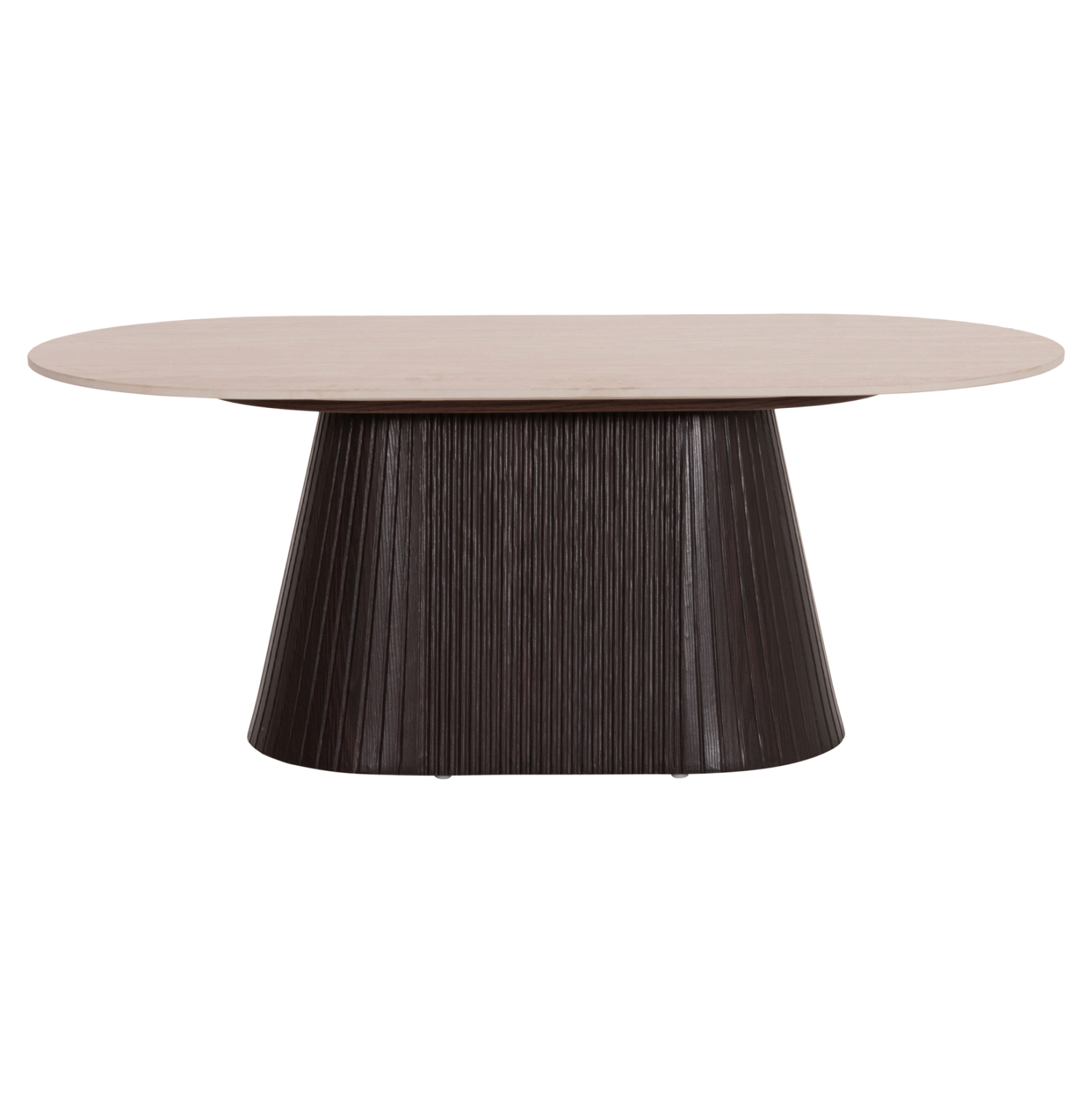 Το τραπέζι σαλονιού CATER είναι οβάλ και αποτελεί νέα προσθήκη στην γκάμα μας. Η επίπεδη επιφάνειά του είναι κεραμική σε χρωματισμό TRAVERTINE STONE, ενώ η βάση του είναι κατασκευασμένη εξολοκλήρου από MDF σε χρώμα σκούρο καφέ, με όμορφες πτυχώσεις.