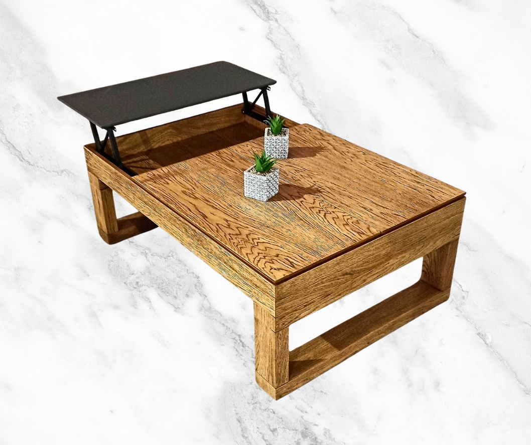 Τραπεζάκι σαλονιού εξαιρετικής ποιότητας, με πολύ ιδιαίτερα πόδια. Διαθέτει 3 σερβιτόρους για μεγαλύτερη ευκολία στην καθημερινότητα. Κατασκευασμένο από ξύλο δρυς με συνδυασμό λάκας.