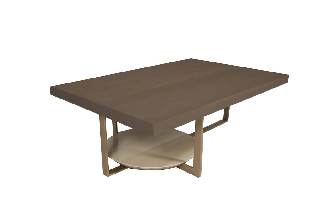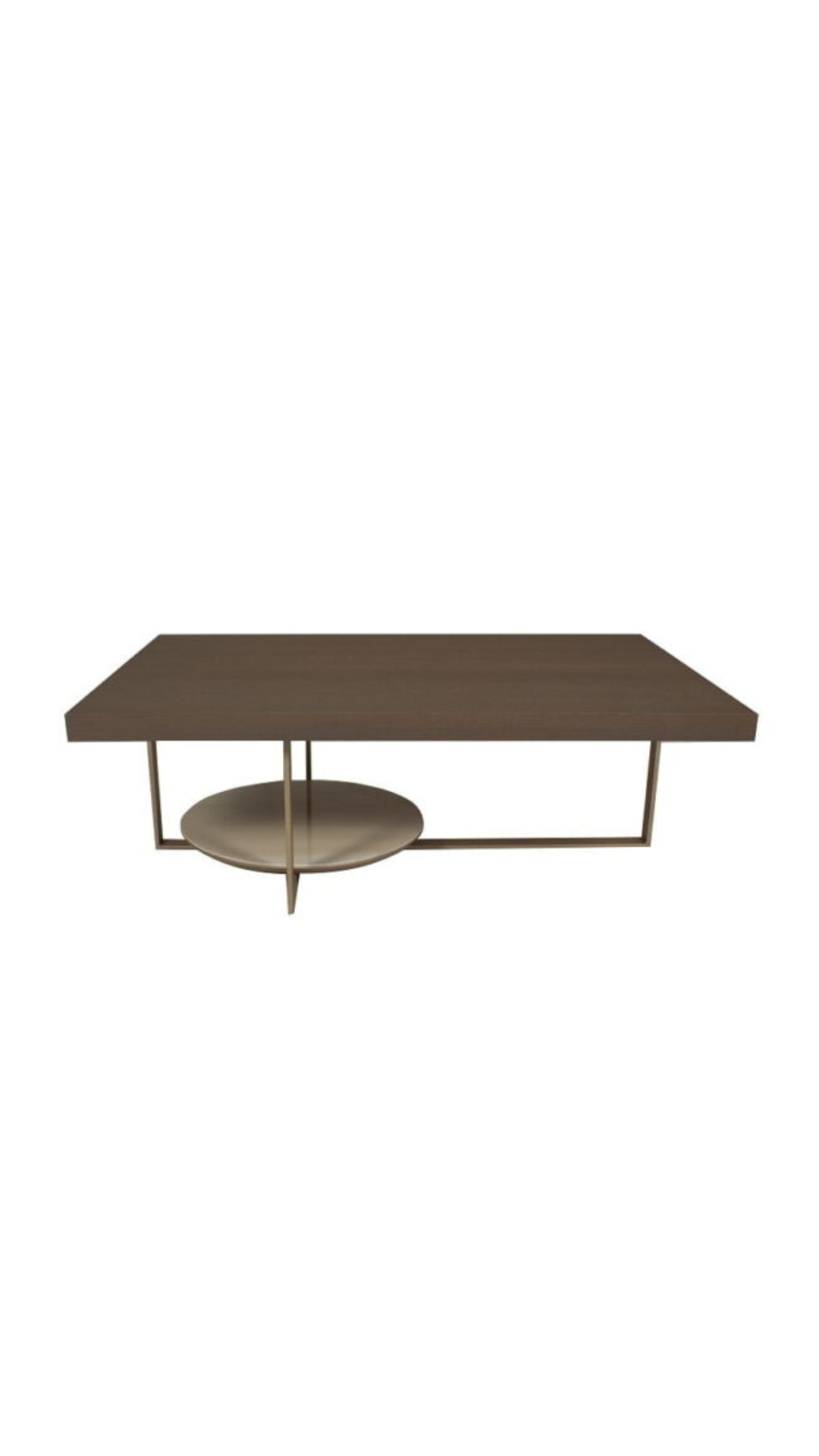 Διακριτικό τραπεζάκι σαλονιού με δρύινο καπάκι, χρυσά μεταλλικά πόδια και κεραμικό στήριγμα αποθήκευσης.