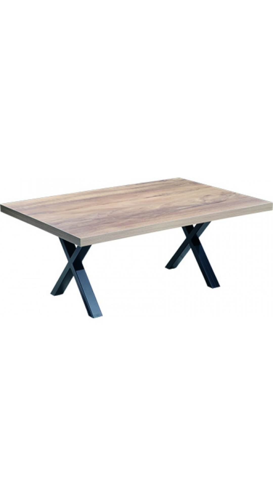 Τραπέζι σαλονιού σε μόκα απόχρωση μελαμίνης με μαύρα μεταλλικά πόδια.