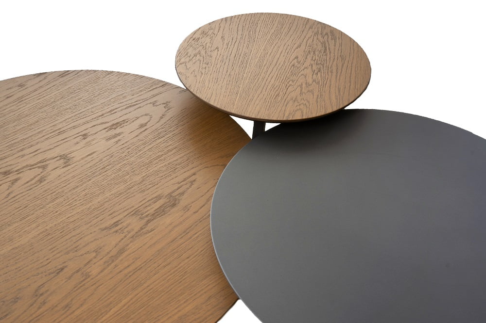Το σετ αποτελείται από τρία τραπεζάκια διαφορετικών διαμέτρων και μπορούν να διακοσμηθούν ξεχωριστά.
