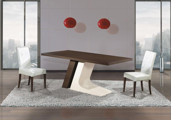 Δρύινη τραπεζαρία με μοντέρνα βάση σε σχήμα L. Είναι κατασκευασμένη από ξύλο δρυς με συνδυασμό λάκας.