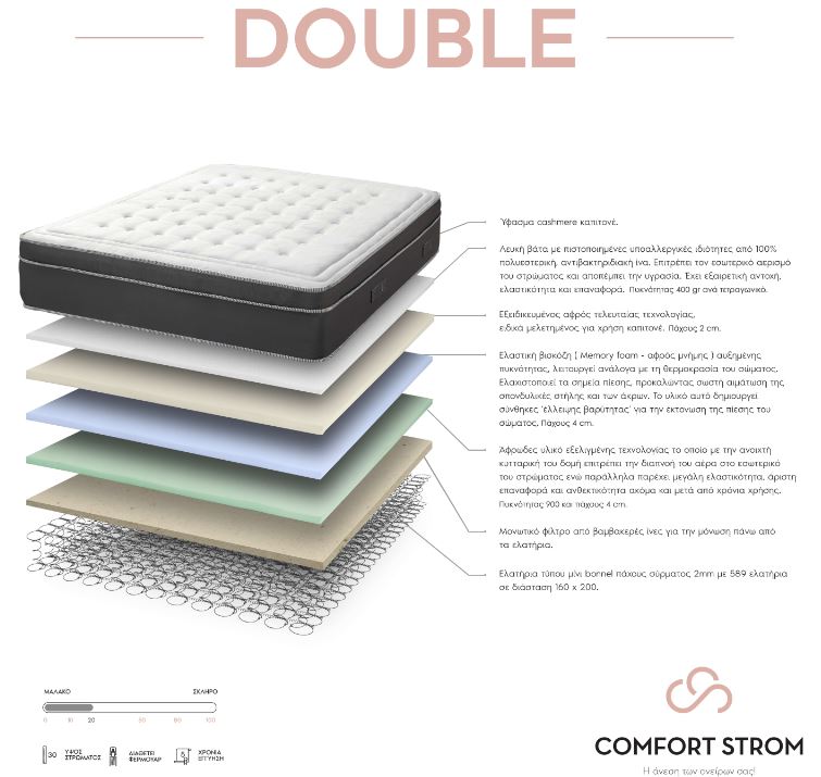 | Μέγεθος | A) Μονό (90×190), Β) Ημίδιπλο (110×190), Γ) Διπλό (140×190), Δ) Διπλό (150×200), Ε) Διπλό (160×200) |